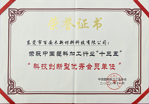 中国塑料加工行业“十三五”“科技创新型优秀会员单位”
